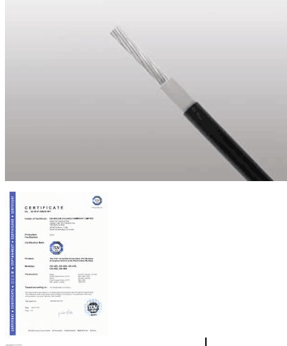 備注:我公司可以根據(jù)用戶的要求生產(chǎn)除TUV認(rèn)證以外的光伏電纜,也可以生產(chǎn)多芯(2~5芯、截面1~16 mm2)光伏電纜,同時(shí)能夠?yàn)楣夥娬具B接技術(shù)提供一系列的解決方案。