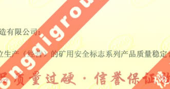 礦用安全標(biāo)志系列產(chǎn)品質(zhì)量穩(wěn)定合格證書