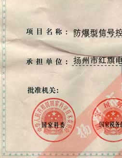 國家重點新產(chǎn)品證書(防爆型信號控制電纜)