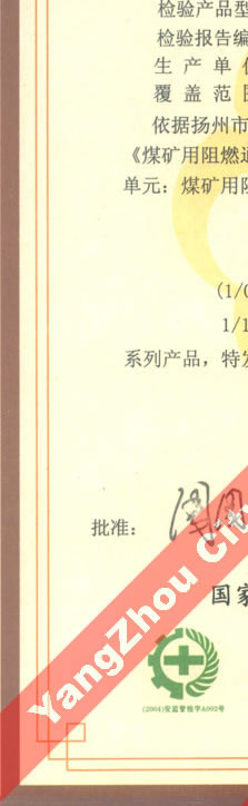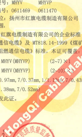國家采煤機械質(zhì)量監(jiān)督檢驗中心檢驗合格證--煤礦用阻燃電纜(MHYV,MHYVP)