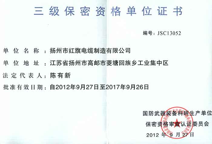 國防武器裝備科研生產(chǎn)三級保密資格單位證書