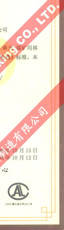 國家采煤機(jī)械質(zhì)量監(jiān)督檢驗(yàn)中心檢驗(yàn)合格證--煤礦用阻燃電纜(MYQ-0.3/0.5)