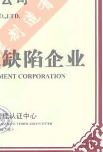 中國(guó)質(zhì)量無投拆產(chǎn)品無缺陷企業(yè)證書