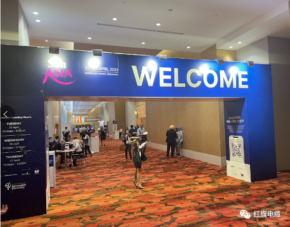 2023年4月25日-27日揚州紅旗電纜受邀參加了在新加坡濱海灣金沙會展中心的國際海事船舶展會,攜(艦)船用電纜、石油平臺電纜、海洋工程電纜、港口機械電纜、起重器具電纜等產(chǎn)品在B2-P15H展位精彩亮相。
